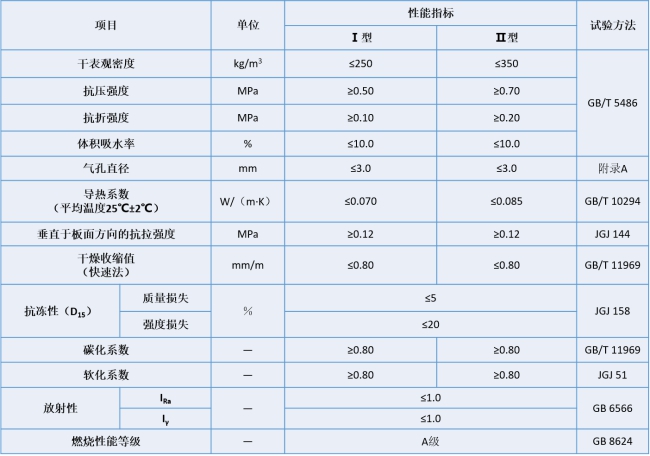 改性发泡水泥保温板系列产品材料中含有大量相互独立的细小气孔,容重轻,热阻大。干密度150~350kg/m3,导热系数0.055~0.085W/(m·k),具有很好的保温隔热性能。